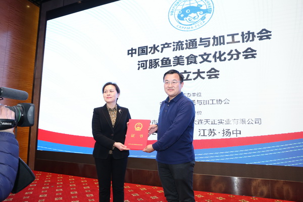 2019年3月8日,在這春江水暖、河豚欲上之時,中國河豚產(chǎn)業(yè)迎來了一件別具意義的盛事:由中國水產(chǎn)流通與加工協(xié)會主辦,揚中市河豚魚協(xié)會、大連天正實業(yè)有限公司共同承辦的中國水產(chǎn)流通與加工協(xié)會河豚魚美食文化分會成立大會在中國河豚美食之鄉(xiāng)、中國河豚魚文化之鄉(xiāng)——江蘇揚中隆重舉行。來自政府部門、國內(nèi)外餐飲文化界專家、學者、會員、媒體代表等100余人參加大會。